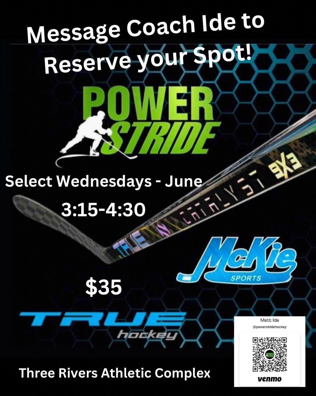 Please reach out to Coach Ide to reserve your spot! CoachideUSAHockey@gmail.com